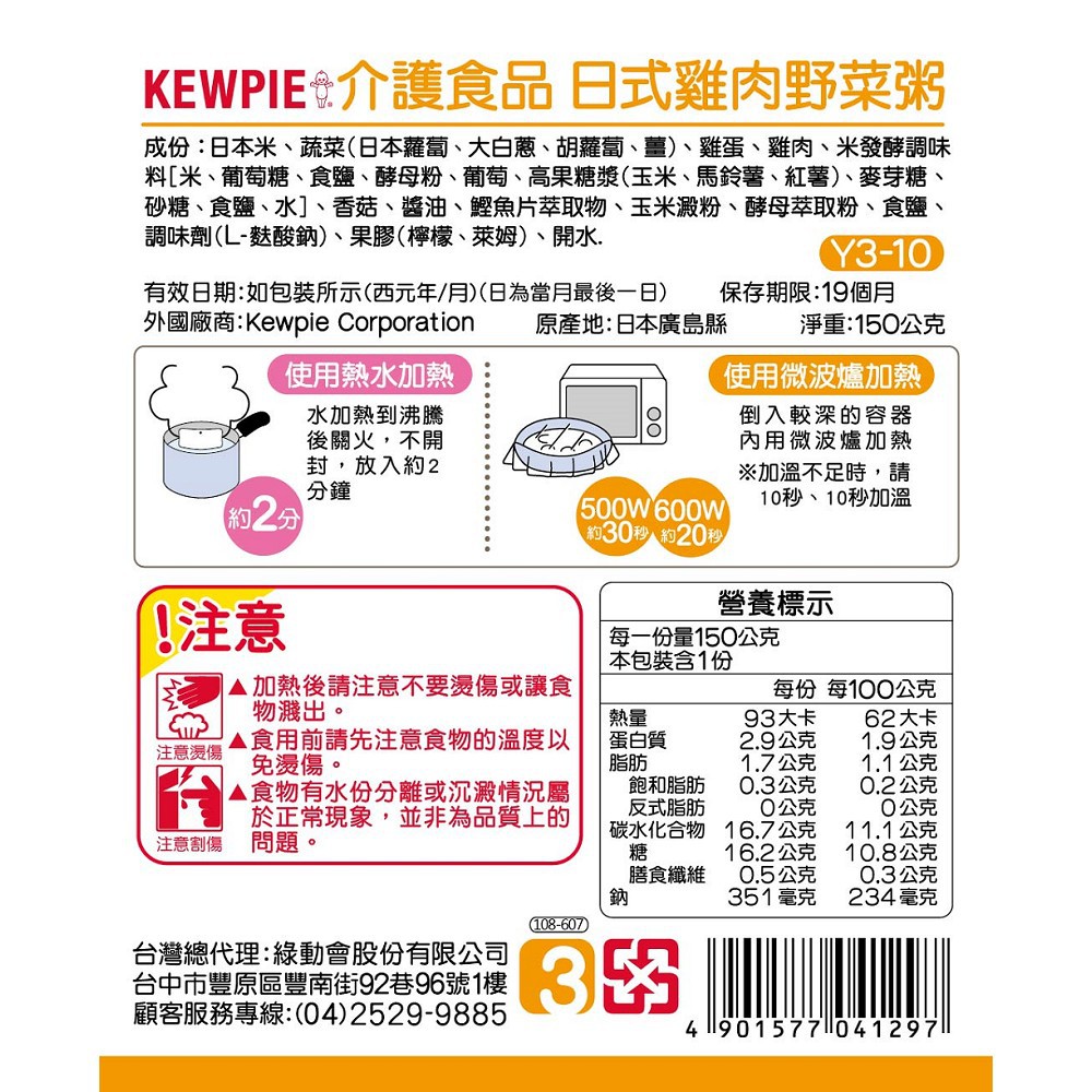 日本KEWPIE 介護食品 Y3-10日式雞肉野菜粥150g(舌可碎) kewpie官方直營店