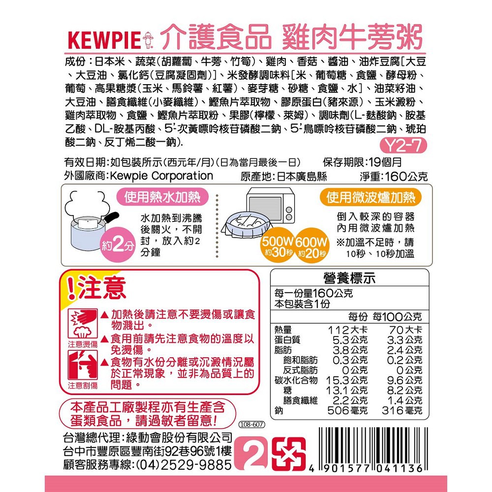 銀髮餐 銀髮粥 日本KEWPIE 介護食品Y2-7雞肉牛蒡粥160g(牙齦磨) kewpie官方直營店