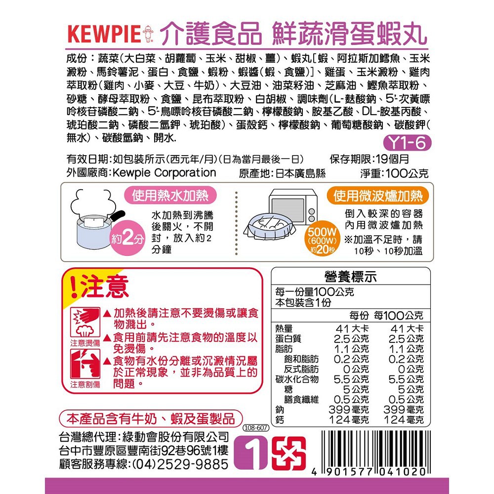 日本KEWPIE 介護食品 Y1-6鮮蔬滑蛋蝦丸100g 輕鬆咬 kewpie官方直營店