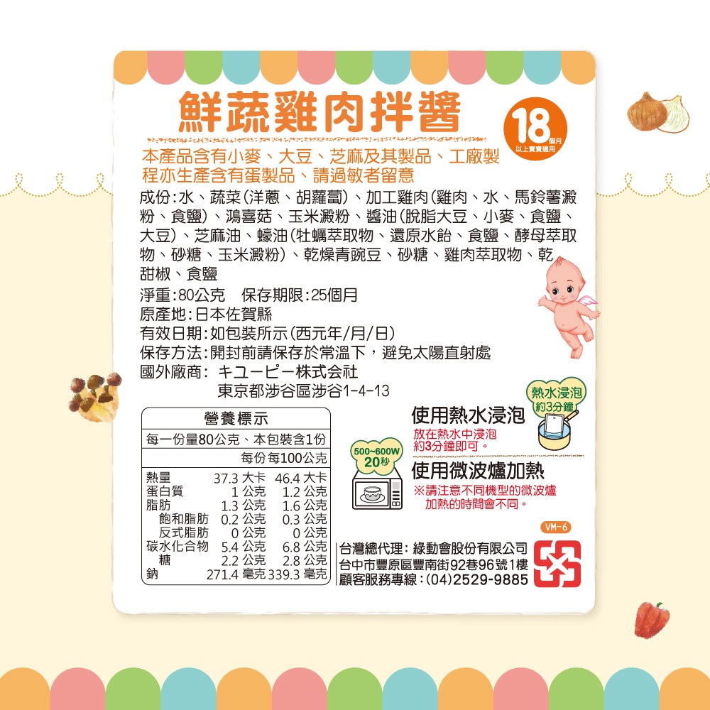 日本KEWPIE VM-6鮮蔬雞肉拌醬18m+ 80g kewpie官方直營店