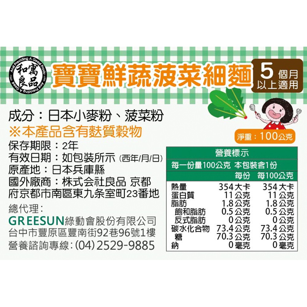 日本和寓良品 寶寶鮮蔬波菜細麵100g kewpie官方直營店