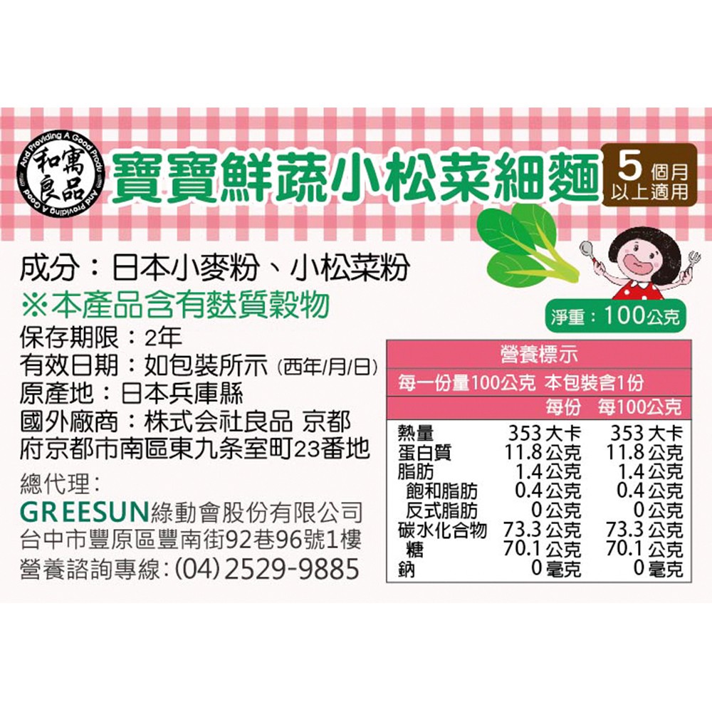 日本和寓良品 寶寶鮮蔬小松菜細麵100g kewpie官方直營店