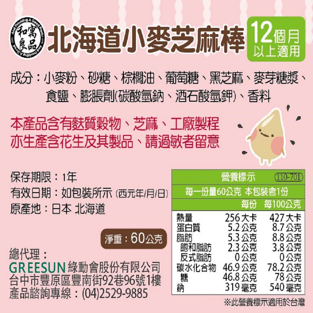日本和寓良品 北海道小麥芝麻棒60g kewpie官方直營店