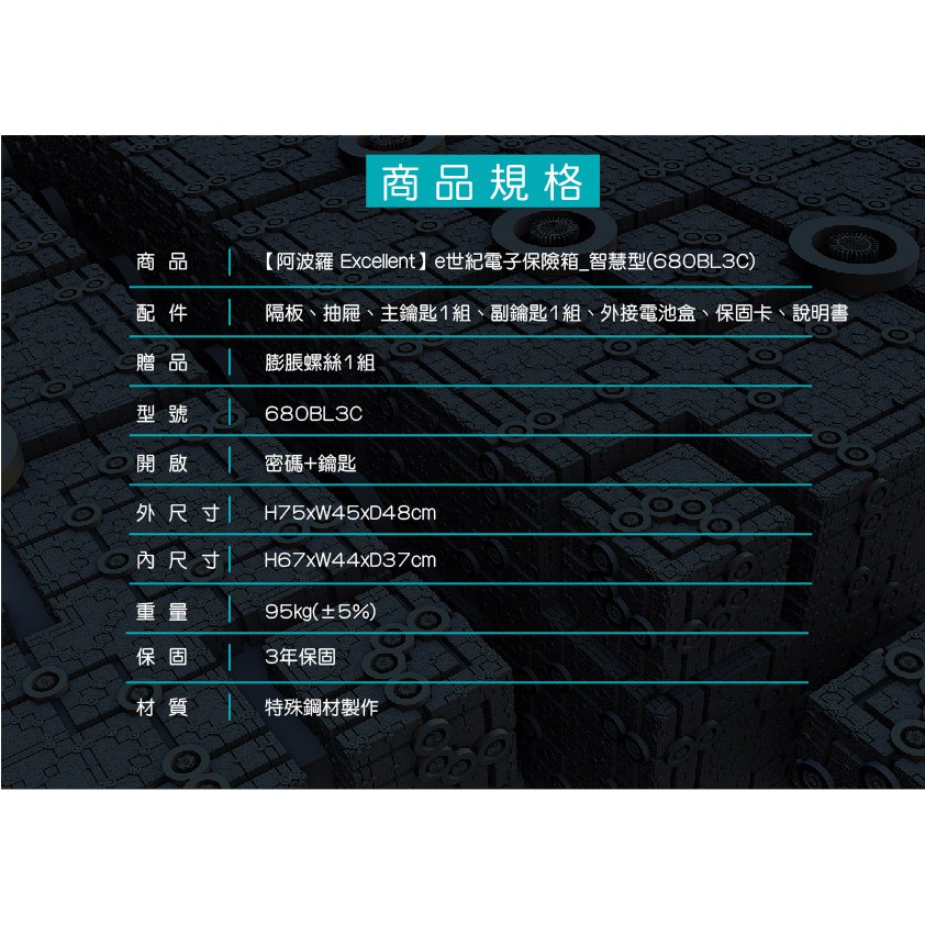 阿波羅 Excellent 電子保險箱 680BL3C(智慧型)