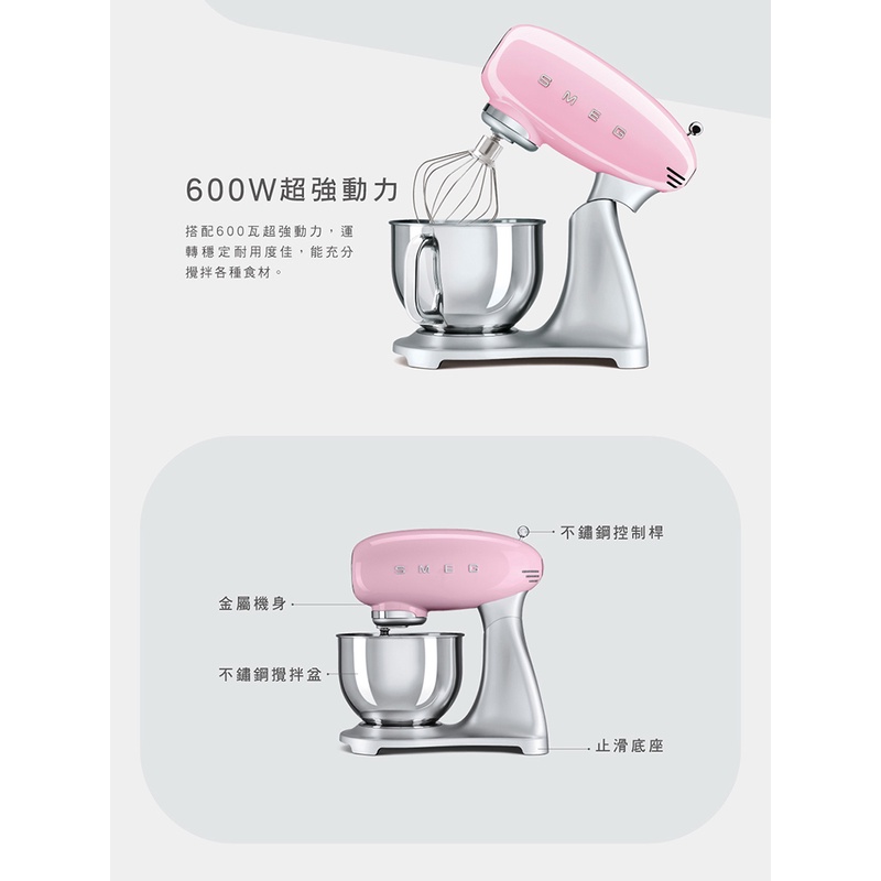 【SMEG】義大利10段多功能復古美學攪拌機-粉紅色(贈烘焙食譜)