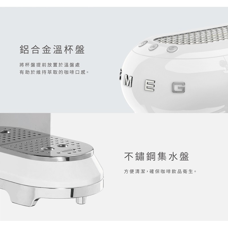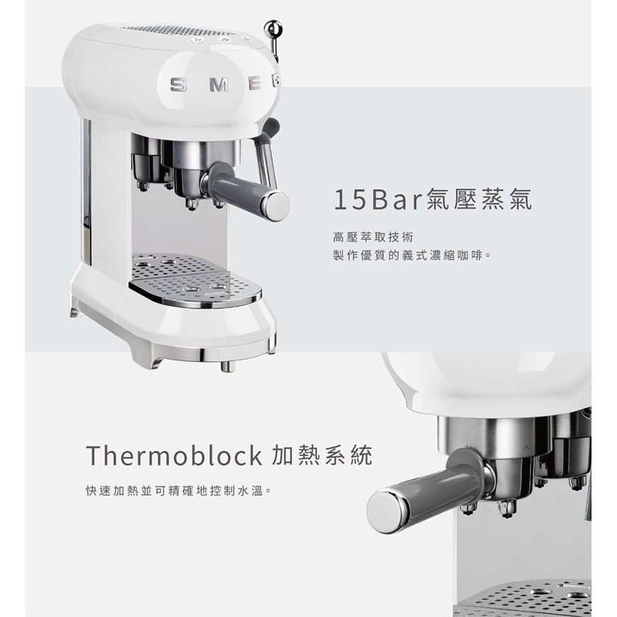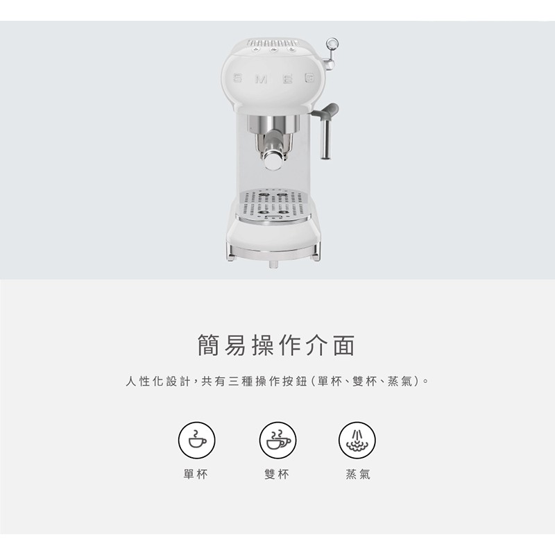 【SMEG】義大利半自動義式咖啡機-珍珠白