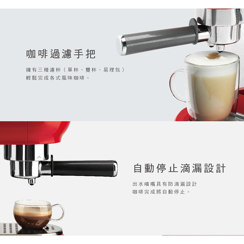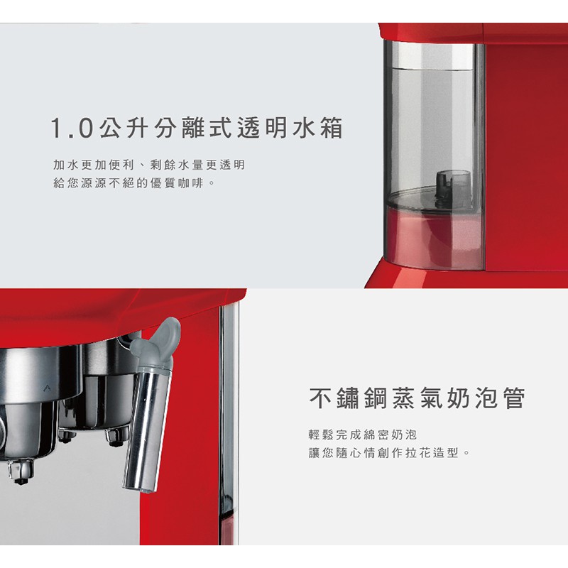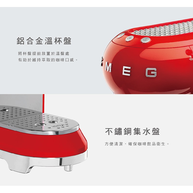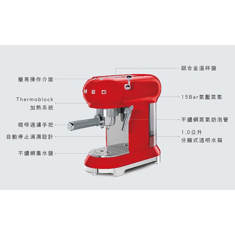 【SMEG】義大利半自動義式咖啡機-魅惑紅