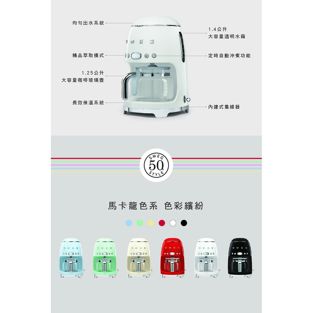 【SMEG】義大利濾滴式咖啡機-珍珠白_DCF02WHUS