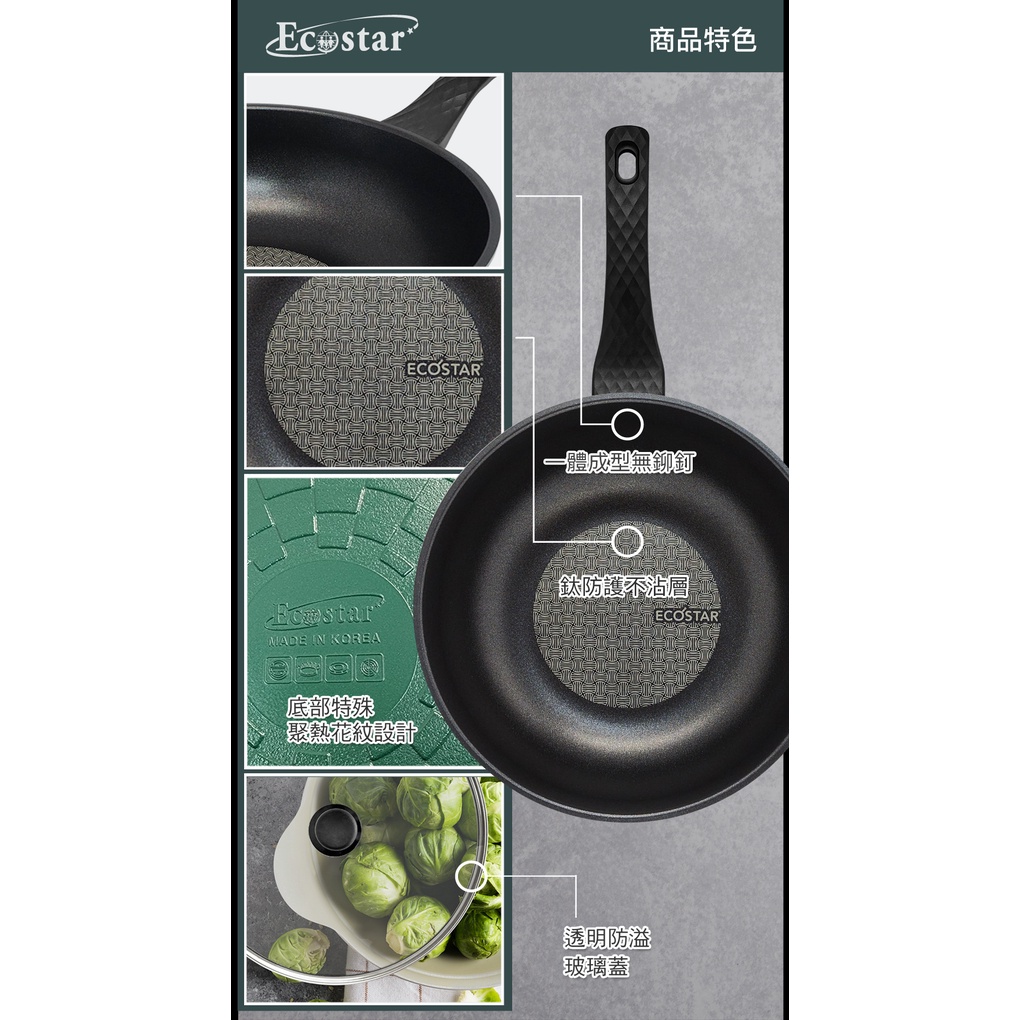 【韓國ECOSTAR】鈦盾綠黑不沾湯鍋28cm