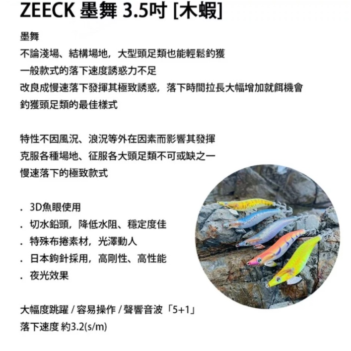 【獵漁人】現貨 開發票ZEECK EGIANGEL 墨舞3.5吋木蝦 日本尾針 墨將