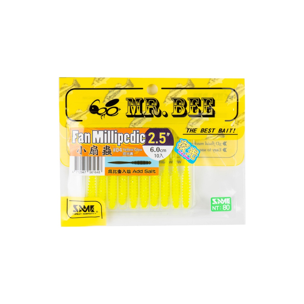 【獵漁人】SAME莎之美 MR.BEE蜜蜂先生 小扇蟲軟蟲 2.5吋 小扇蟲 2.5吋 軟蟲 路亞 軟餌 莎美