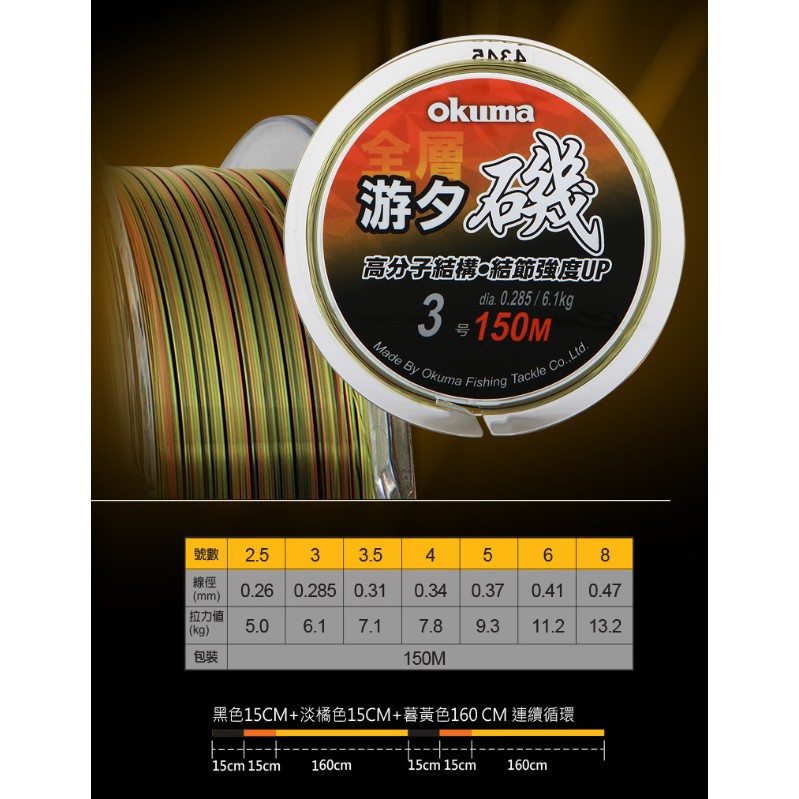 【獵漁人】OKUMA 磯釣尼龍線 流線-游夕 150M
