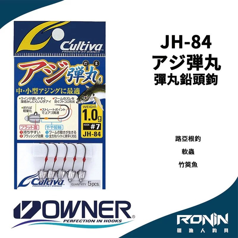 【獵漁人】日本Owner C'utiva JH-84 アジ弾丸 軟蟲路亞用 彈丸鉛頭鉤 竹筴魚 河口魚類