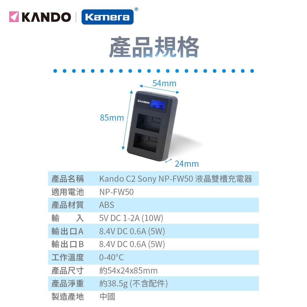 Kando 適用SONY NP-FW50 電池 液晶充電器 雙槽 USB充電