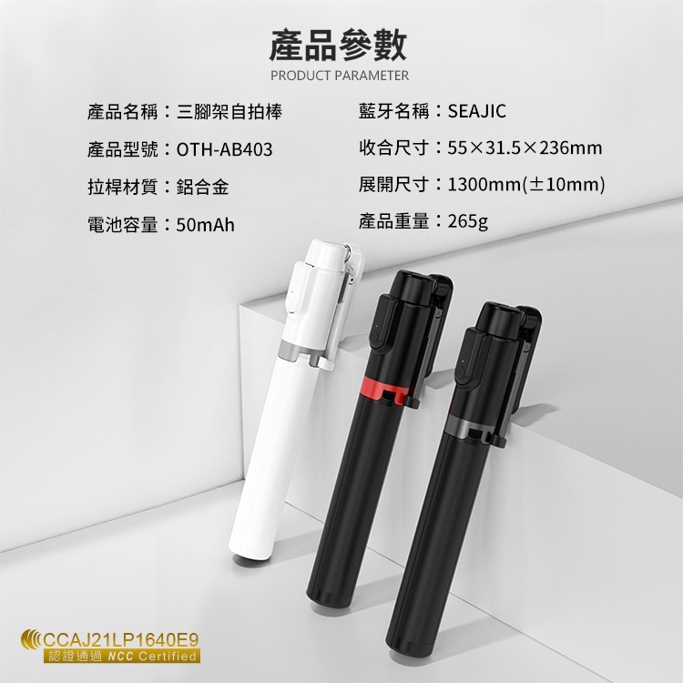 SEAJIC 三腳架自拍棒 (OTH-AB403) 自拍棒 自拍桿 手機架 藍牙 自拍腳架 自拍神器 直播 腳架 加固