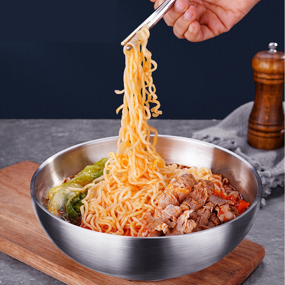 PUSH!餐具304不銹鋼碗加厚雙層隔熱湯碗沙拉碗泡麵碗筷勺組合大號E166-1