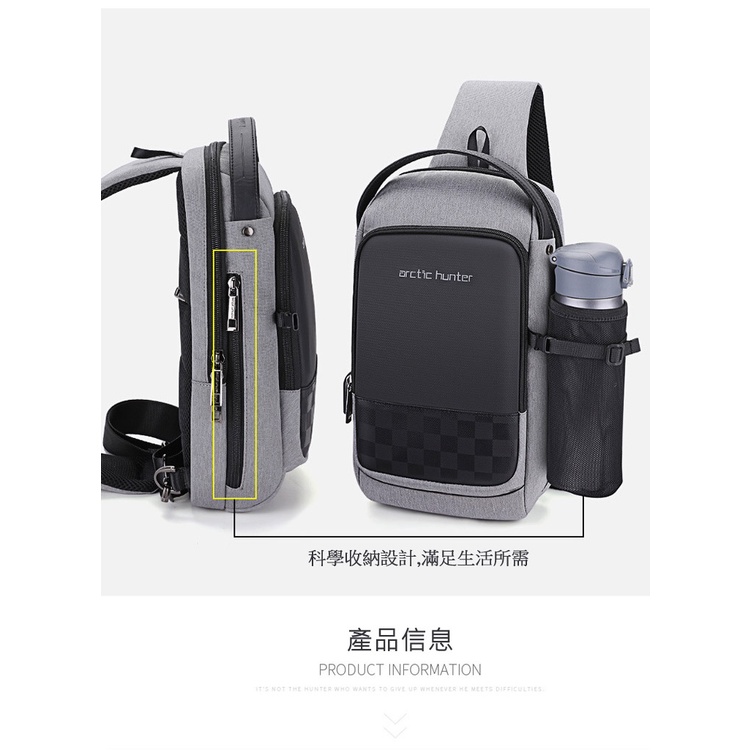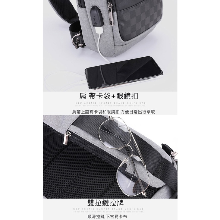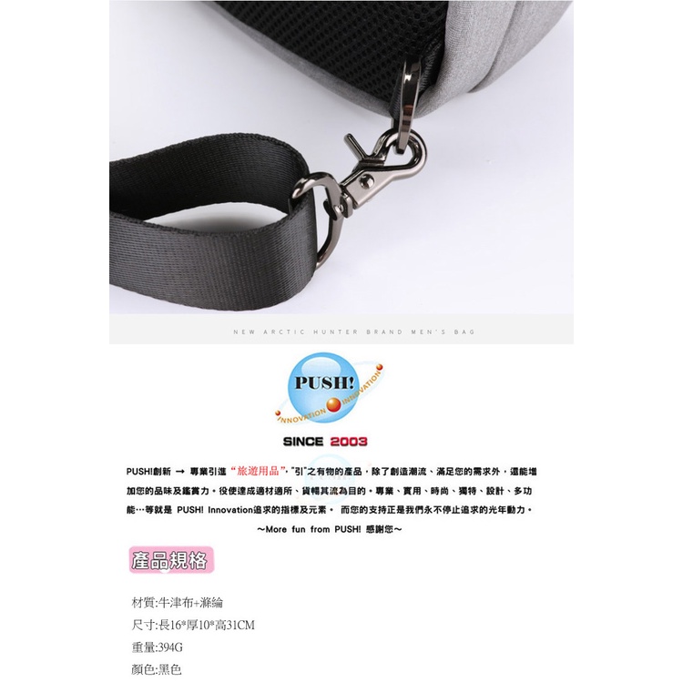 PUSH!戶外休閒用品新款男士防潑水單肩包斜挎包多功能充電胸包U60