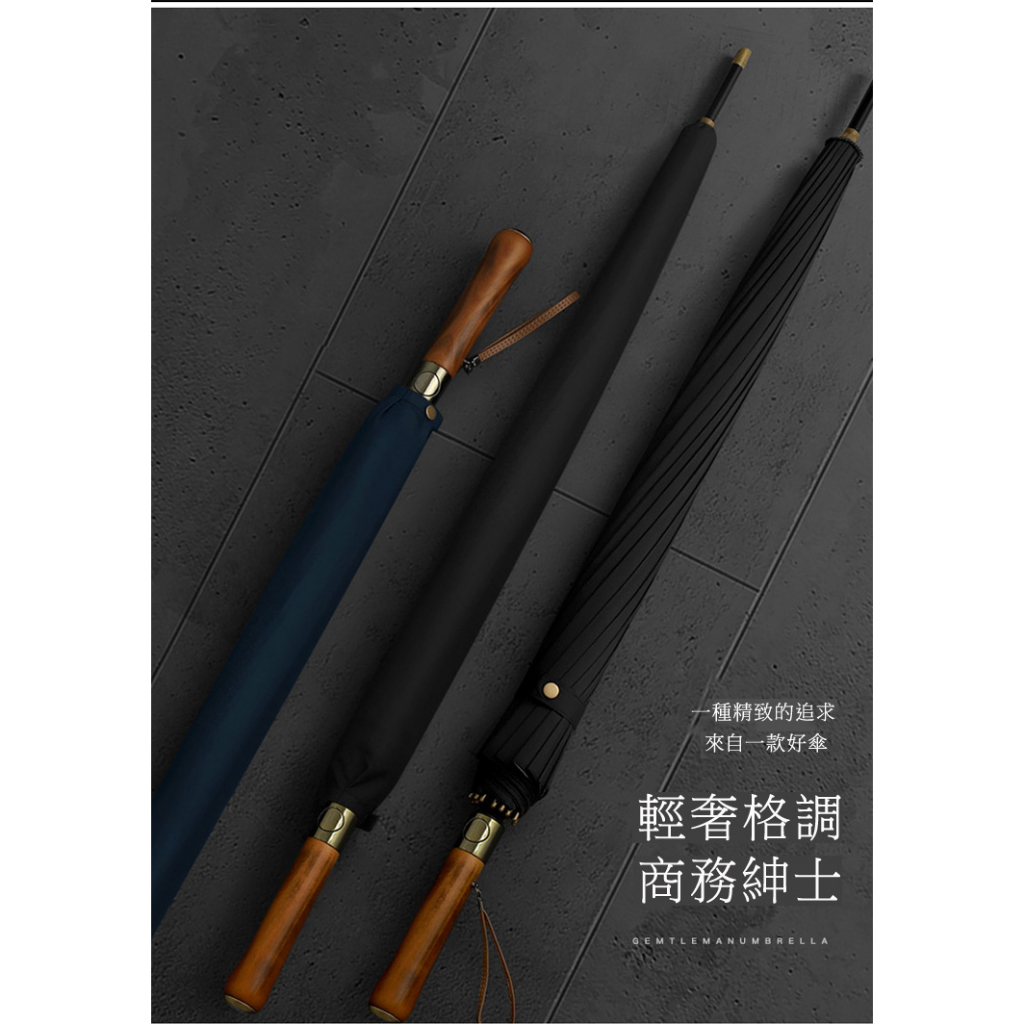 PUSH! 戶外用品 16骨長柄雨傘 實木柄全自動商務雨傘 好聚好傘I99