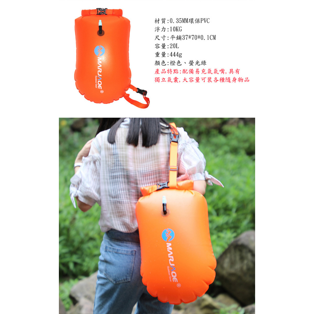 PUSH!戶外用品可充氣漂流袋跟屁救生包救援游泳包防水桶包20L P132