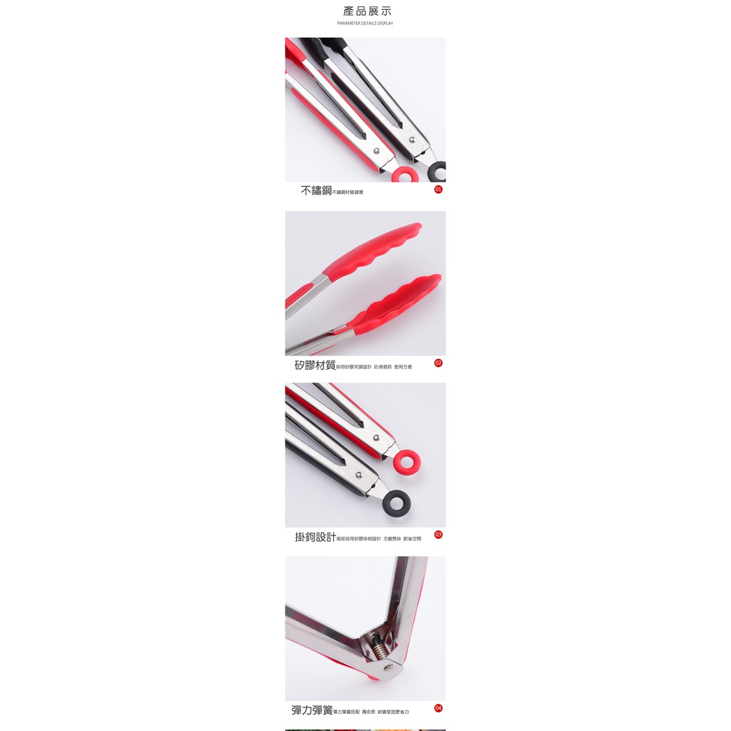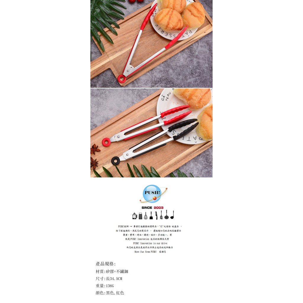 PUSH!餐廚用品 不鏽鋼矽膠食品夾 不沾鍋夾子 牛排烤肉夾 麵包食物夾 燒烤夾子D178
