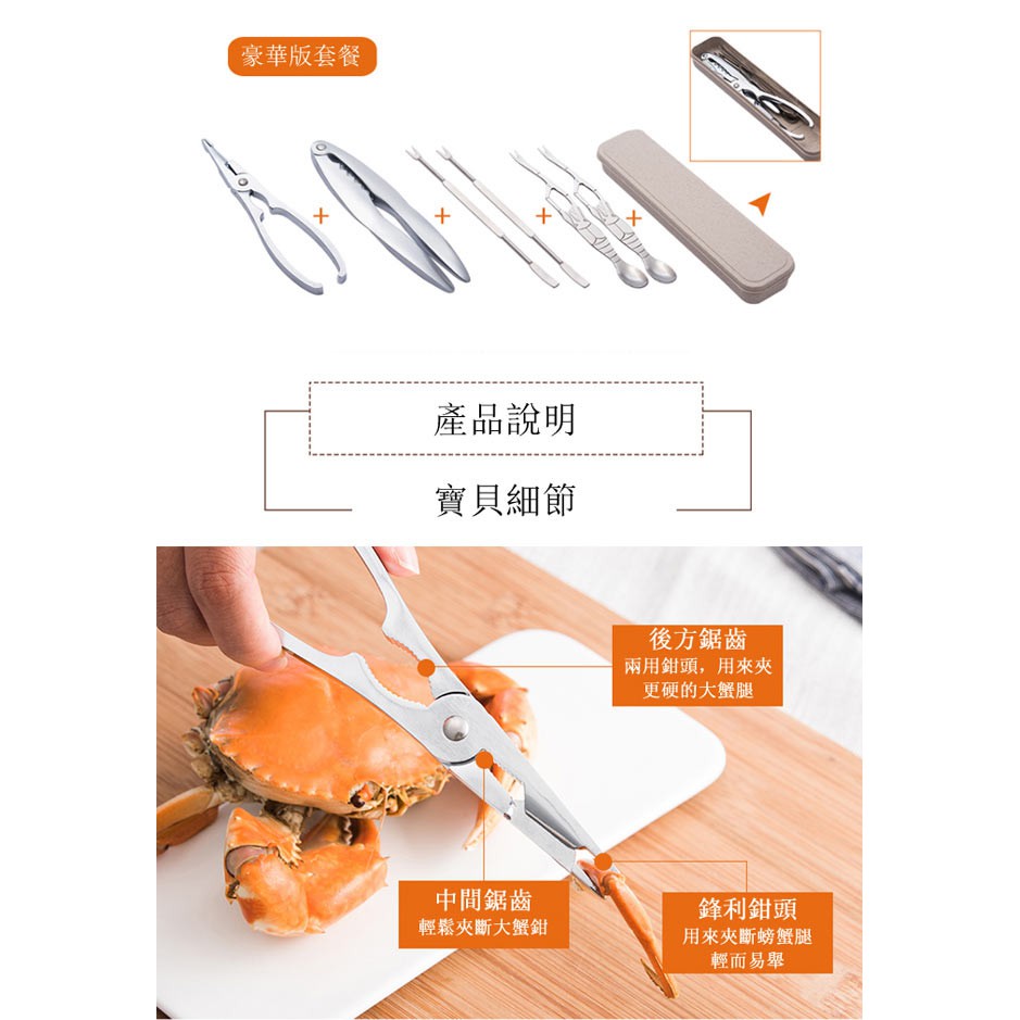 PUSH!餐具用品吃蟹工具蟹六件蟹鉗蟹夾蟹針六件套D158