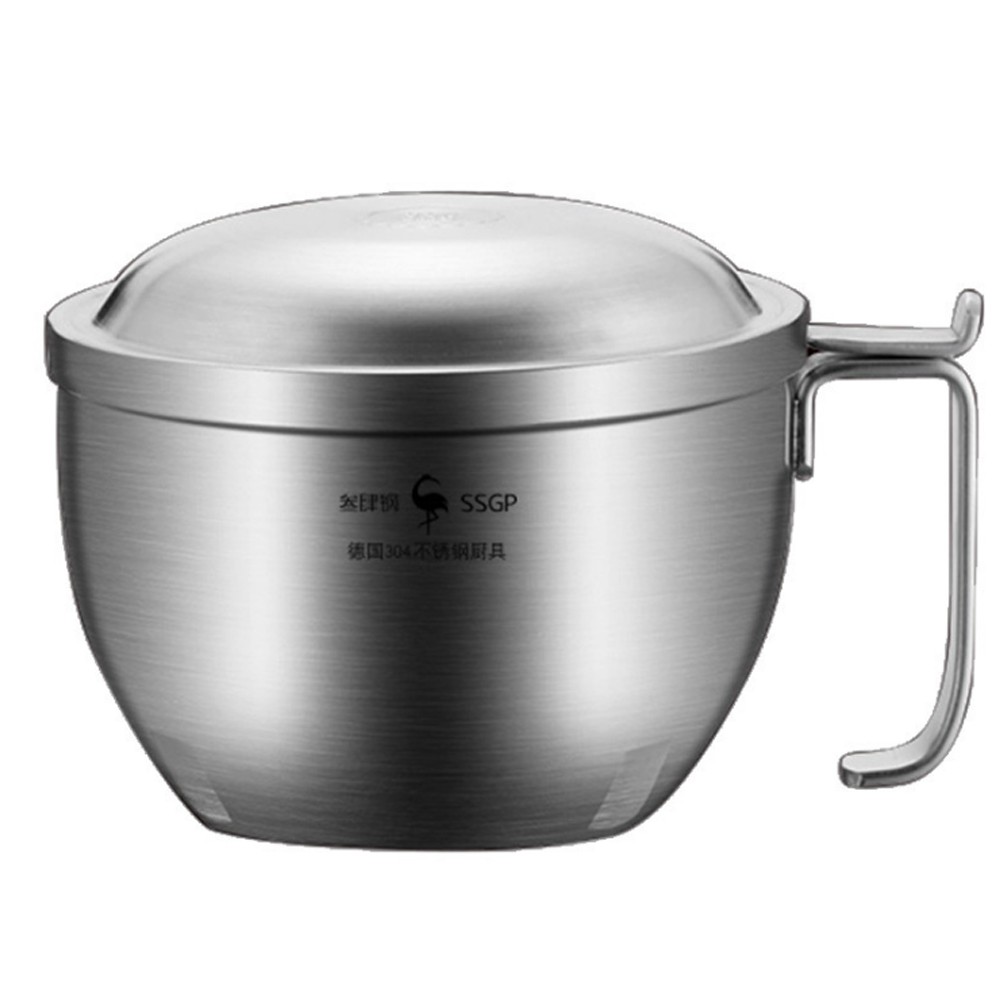 PUSH!餐具用品304不鏽鋼帶把帶蓋泡麵碗速食麵碗湯碗大號飯碗便當飯盒E140