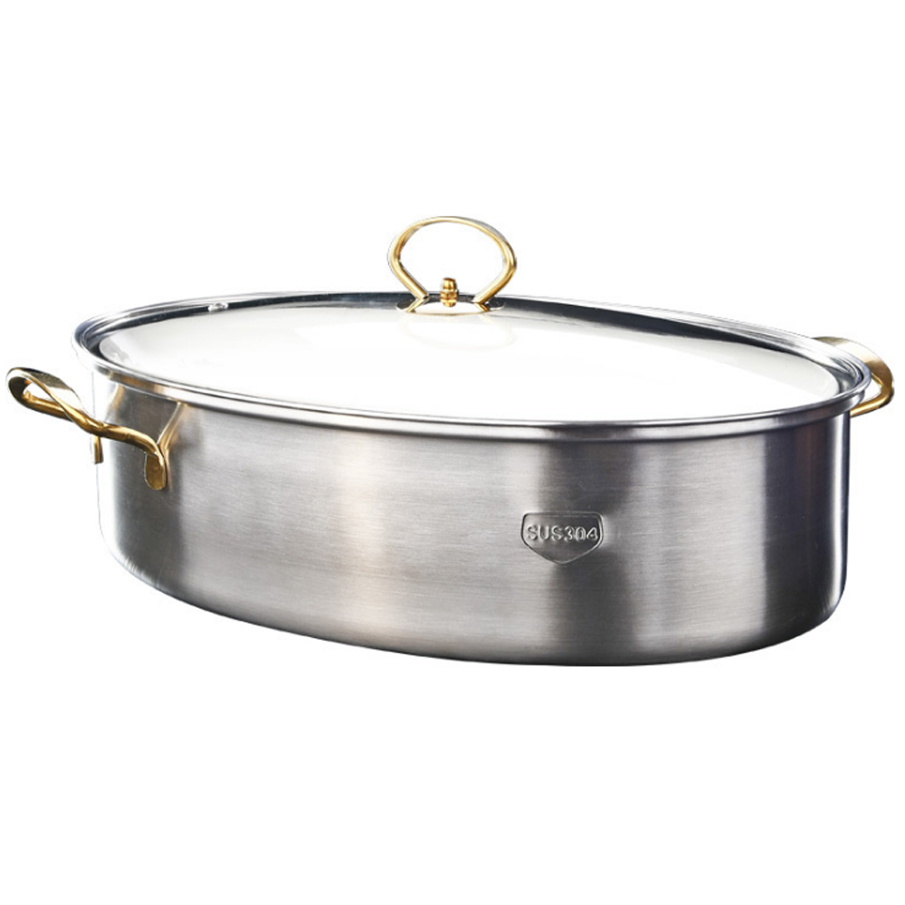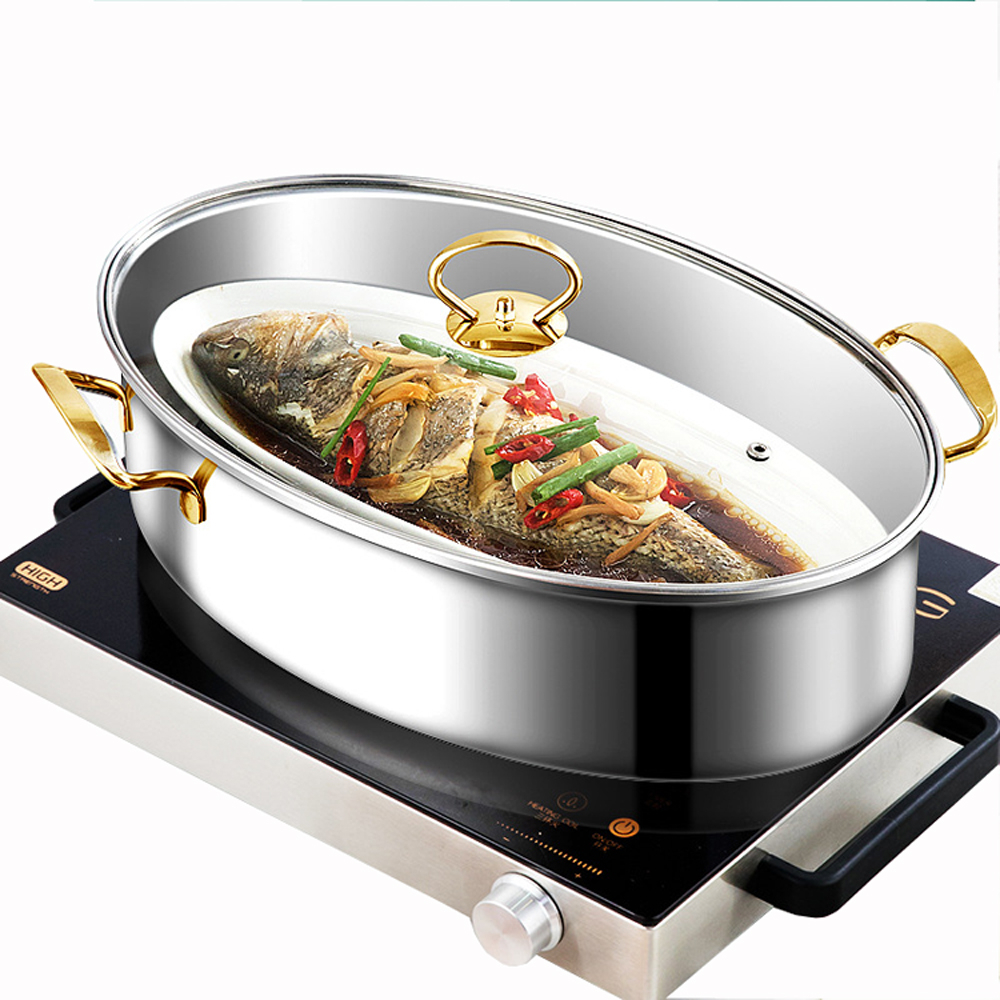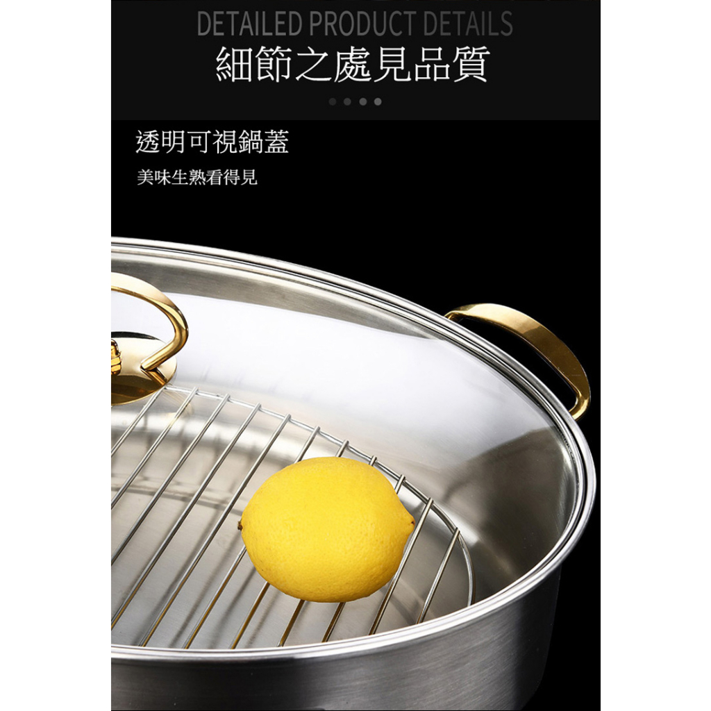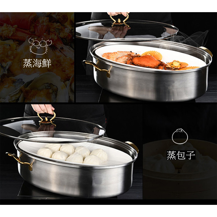 PUSH!廚房用品不銹鋼隔水蒸魚鍋橢圓長形蒸鍋38cm電磁爐蒸魚蒸鍋D207