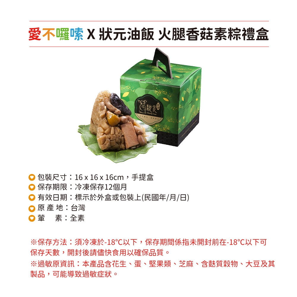 【愛不囉嗦】狀元油飯 火腿香菇素粽禮盒(40入/8盒)宅配免運 手提盒 公益聯名 端午節 全素