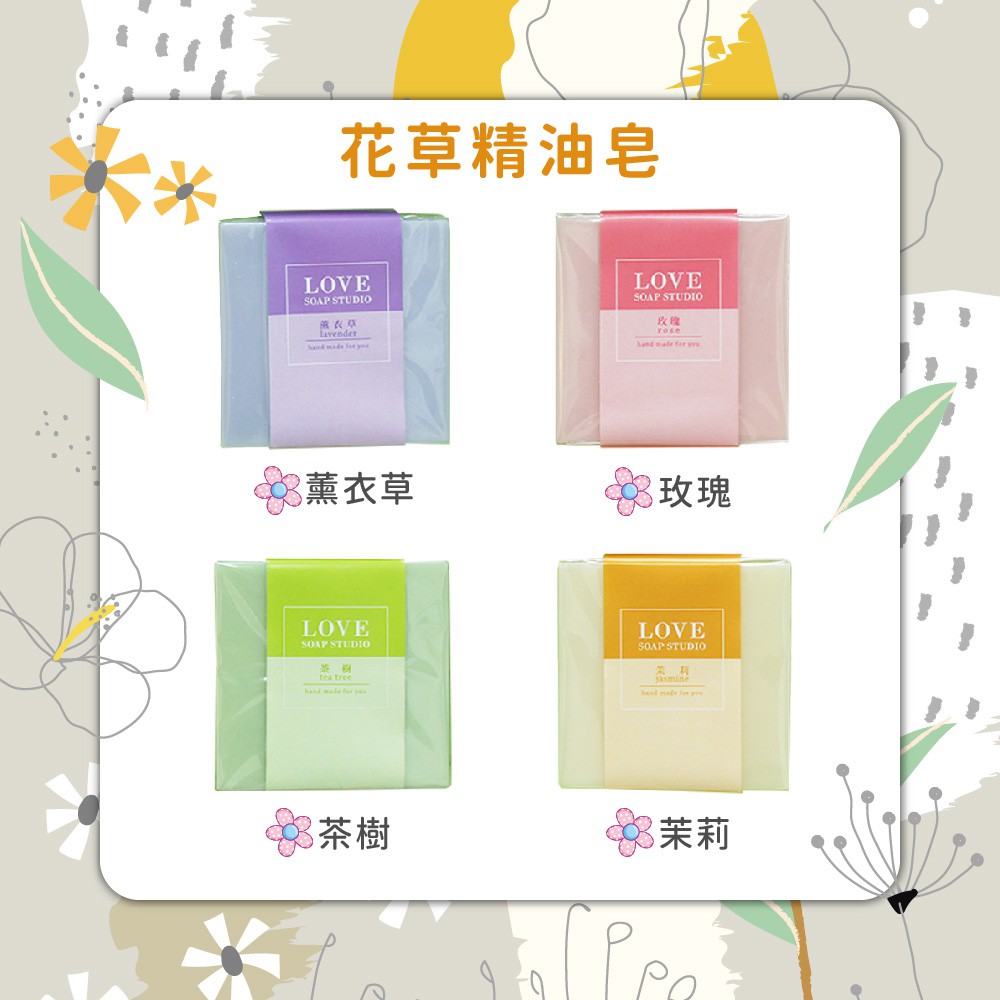【愛皂事】花草精油手工皂 - 香味任選 ( 薰衣草、玫瑰、茶樹、茉莉 )