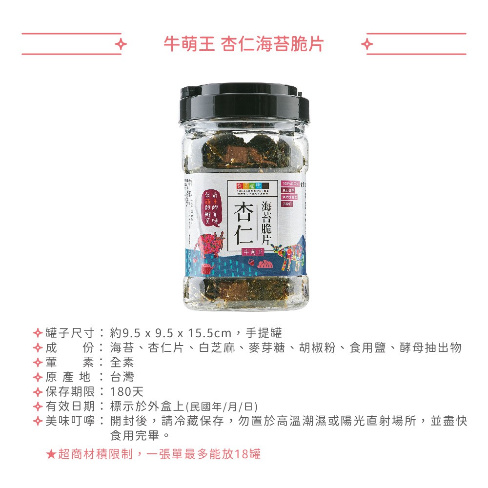 【愛不囉嗦】牛萌王 杏仁海苔脆片 - 海苔無添加物