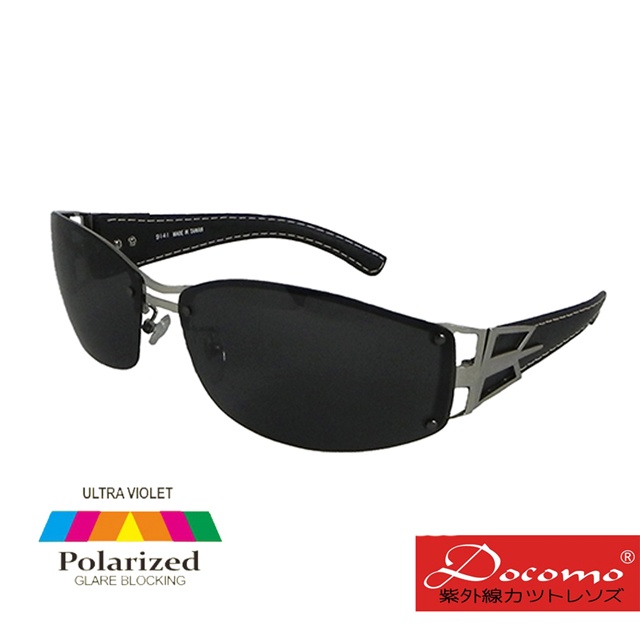 【Docomo】金屬時尚皮革復古寬版眼鏡 Polarized偏光頂級墨鏡 男女通用款(抗UV400)