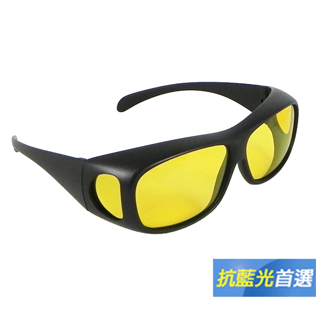 【Docomo】加大型可包覆式 黃色抗藍光鏡片 可直接包覆原本度數眼鏡 立即升級抗藍光眼鏡(亮面黑色框) 藍光眼鏡
