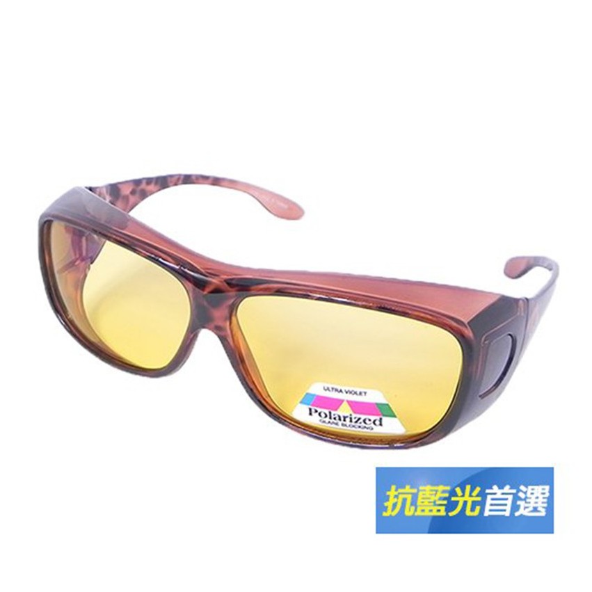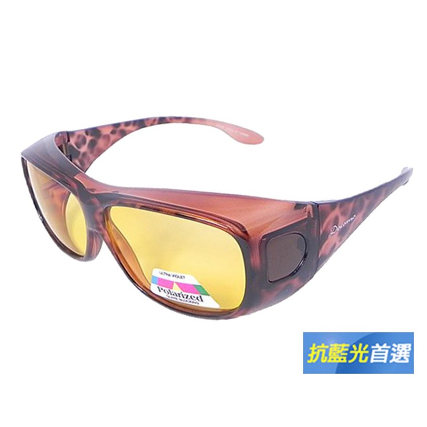 【Docomo品牌】加大型可包覆式 黃色抗藍光鏡片 近視族必備 3C族首選(豹紋框)