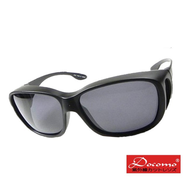 【Docomo可包覆式偏光套鏡】採用頂級偏光鏡片 全方位保護靈魂之窗(霧面黑色框黑色鏡片)