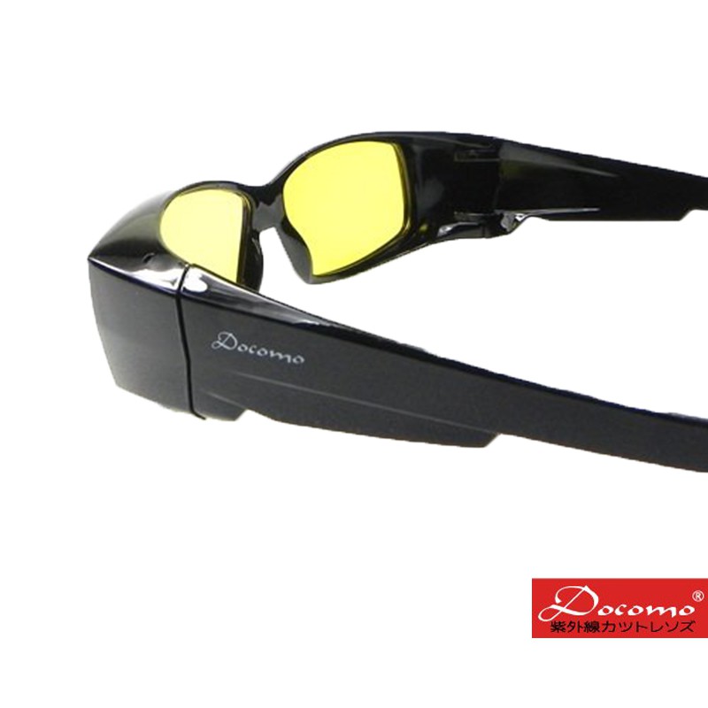 【Docomo夜用偏光可包覆款】 採用頂級黃色偏光鏡片 夜間使用可讓視野清晰明亮 開車、出門最佳配件(霧面黑色框)