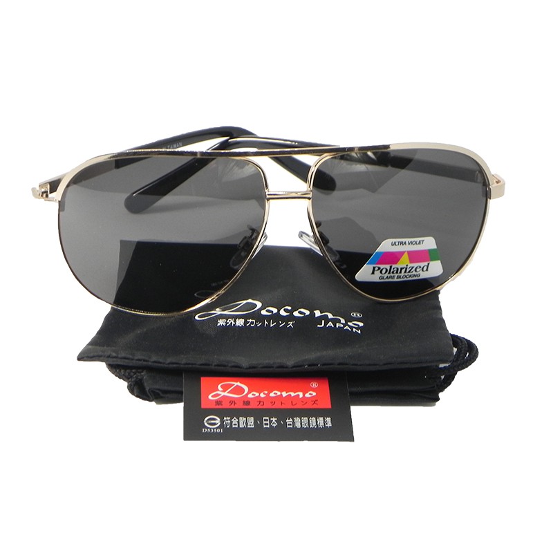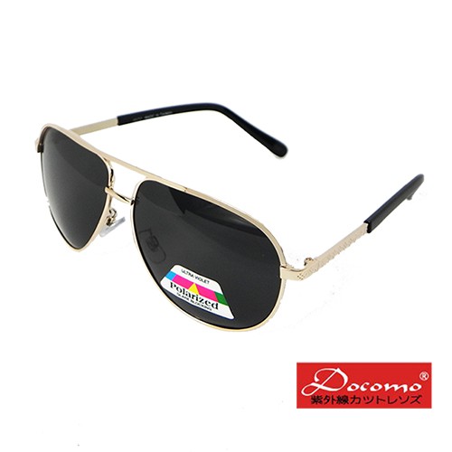 【Docomo金色復古設計款】新上市!poalrized偏光墨鏡 輕盈金框 質感黑灰鏡片 抗UV400 免運費