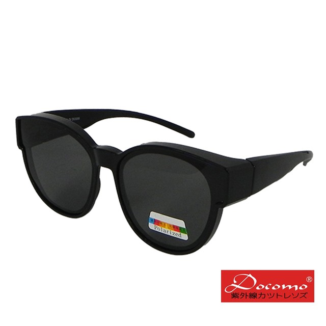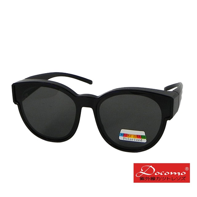 【Docomo新型偏光女款太陽眼鏡】大版型輕量材質框體設計 美感黑色框體 配戴超氣質不撞款 兩種顏色可選