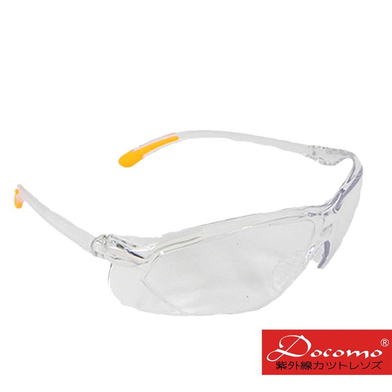 【Docomo高等級安全防護護目鏡】全透明鏡片 彈性止滑腳架設計 超強服貼 加贈眼鏡保護布套