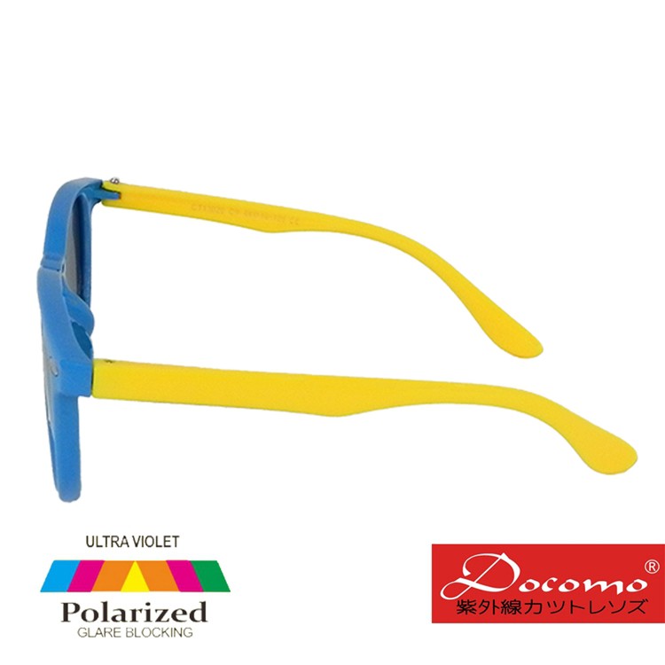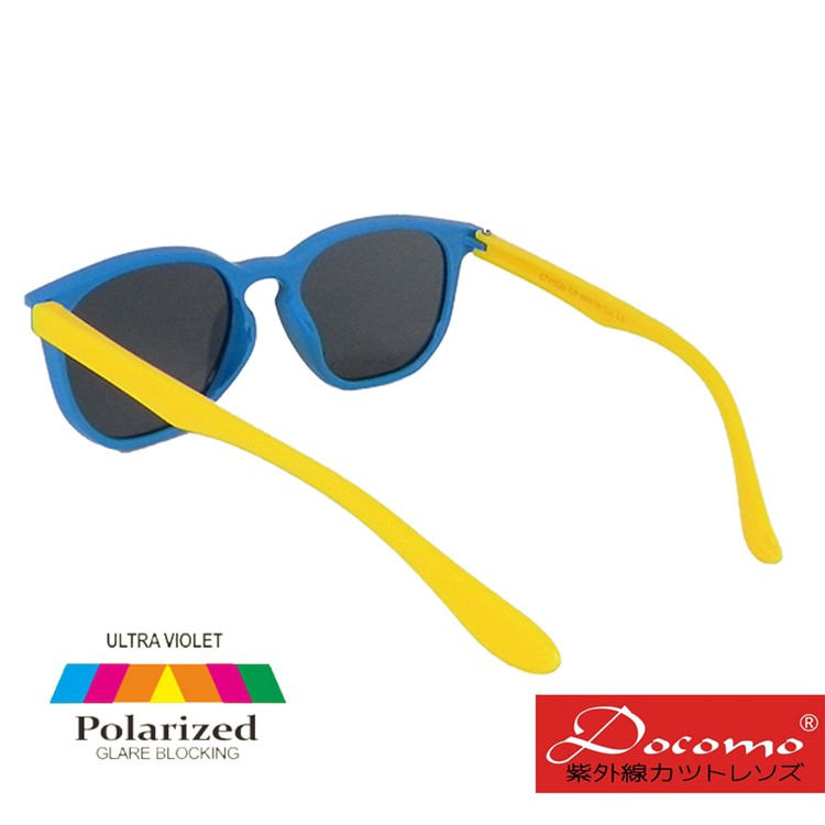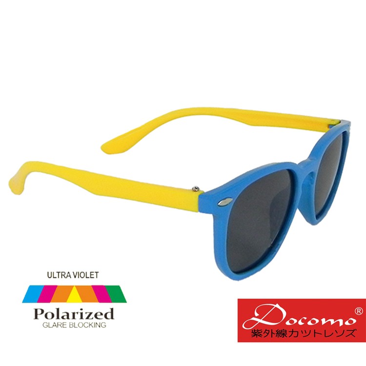 【Docomo】橡膠軟質彈性壓不壞款 質感藍色鏡框 頂級防爆偏光 專業抗UV400兒童運動太陽眼鏡 贈盒裝全配