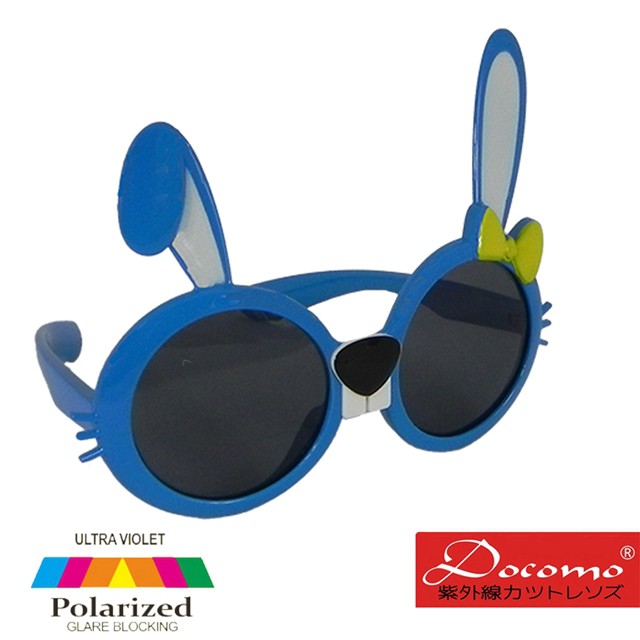 【Docomo】橡膠兒童偏光墨鏡 可愛兔子造型設計款 專業橡膠材質鏡框 頂級防爆偏光 質感藍色 年度新款
