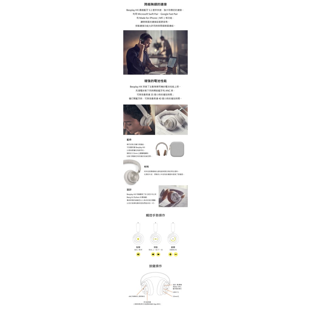 B&O Beoplay HX主動降噪 頭戴式藍牙耳機(公司貨) BANG & OLUFSEN