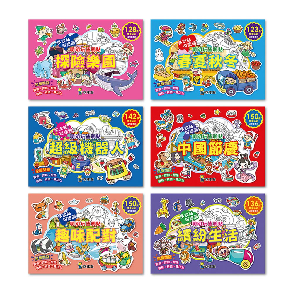 【球球館】探險樂園-聰明玩塗鴉貼(全6冊)-168幼福童書網