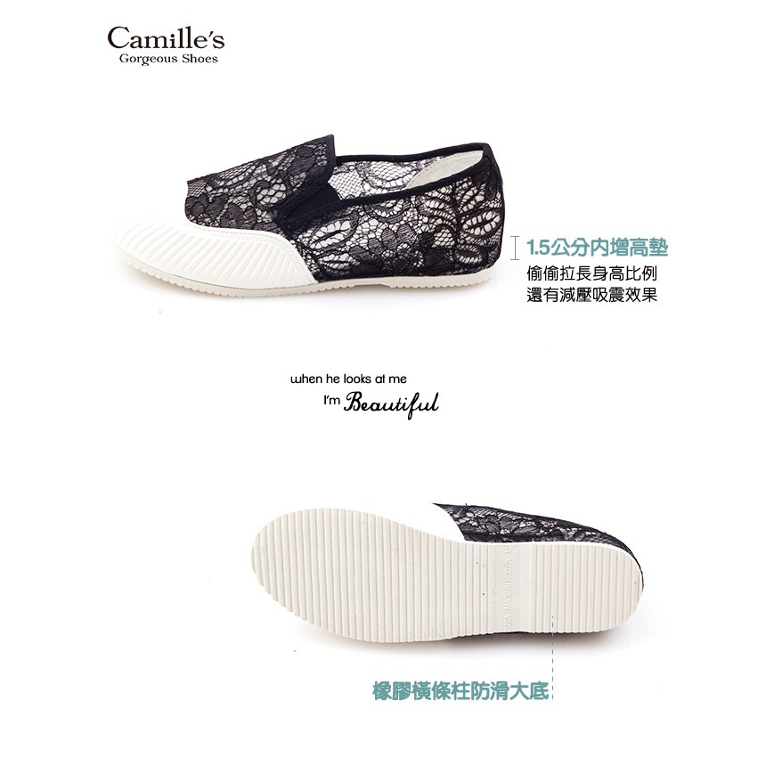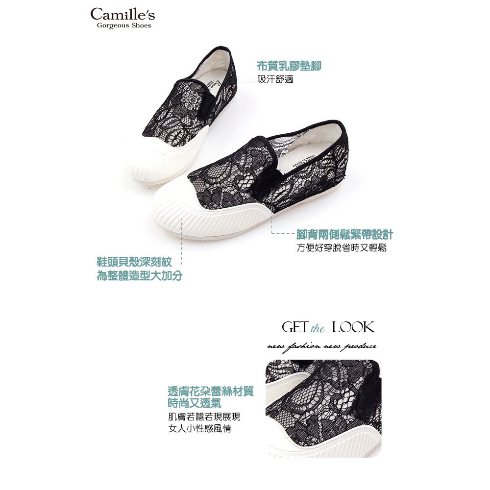 Camille’s 韓國空運-正韓製-花朵蕾絲綁帶樂福懶人休閒鞋-黑色36碼