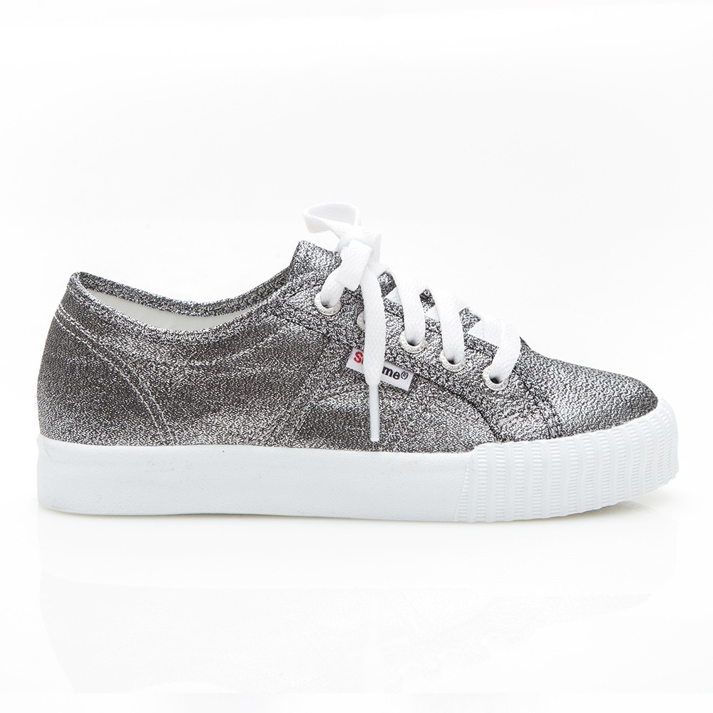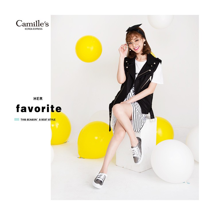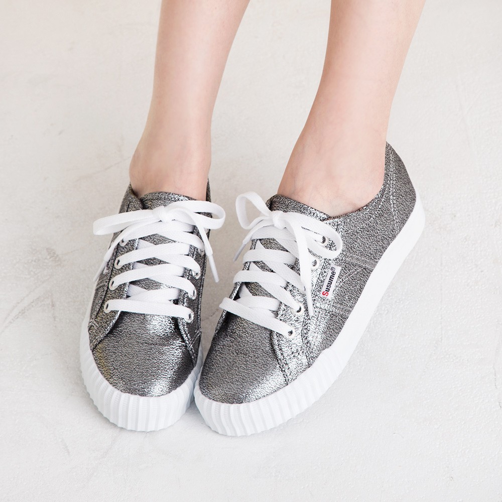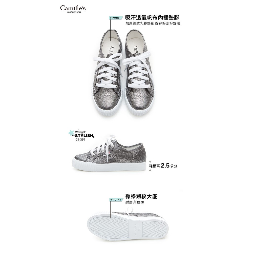Camille’s 韓國空運-正韓製-綁帶閃布白底休閒鞋-銀灰