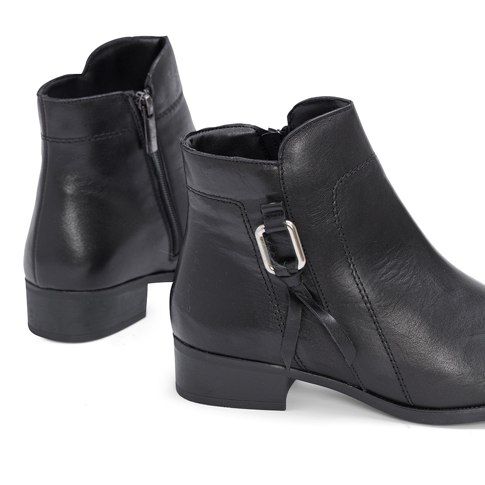 MISWEAR 真皮釦環低跟靴-黑