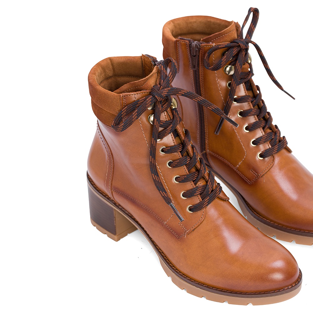 DESIREE 真皮綁帶粗跟馬汀靴-棕