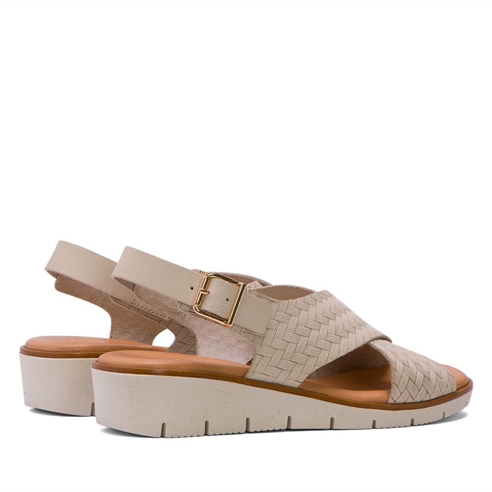 MISWEAR 真皮細編織寬帶交叉微厚底涼鞋-米白