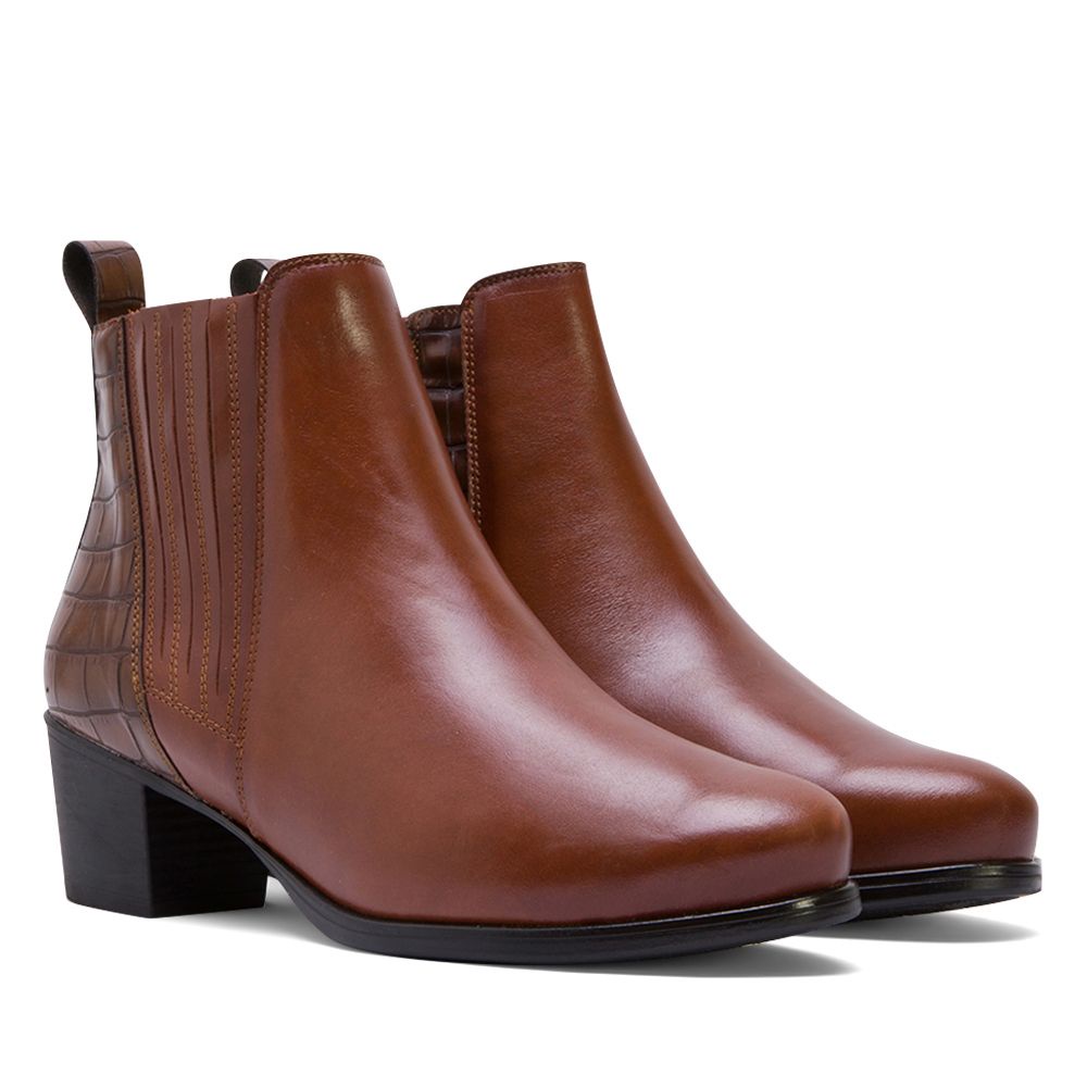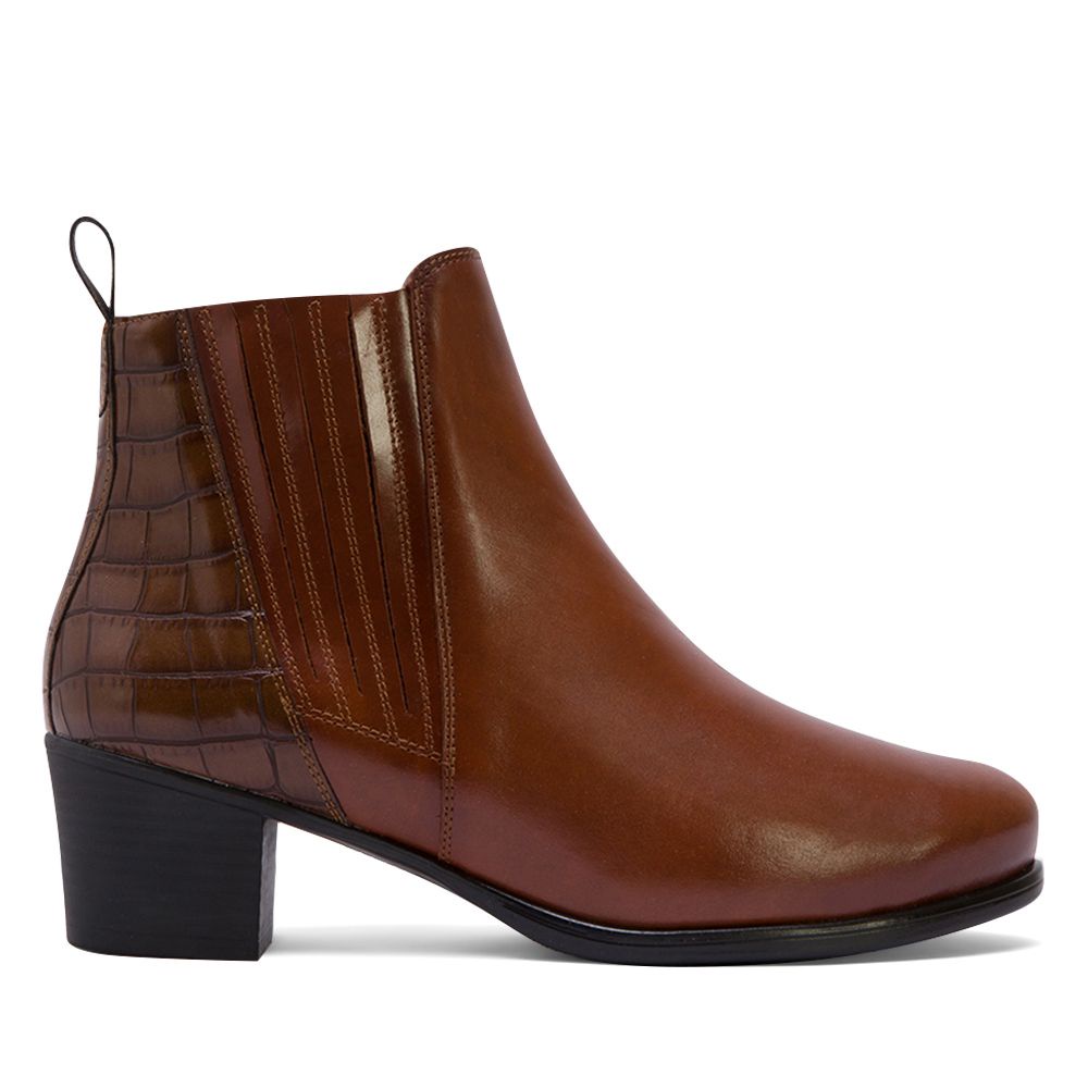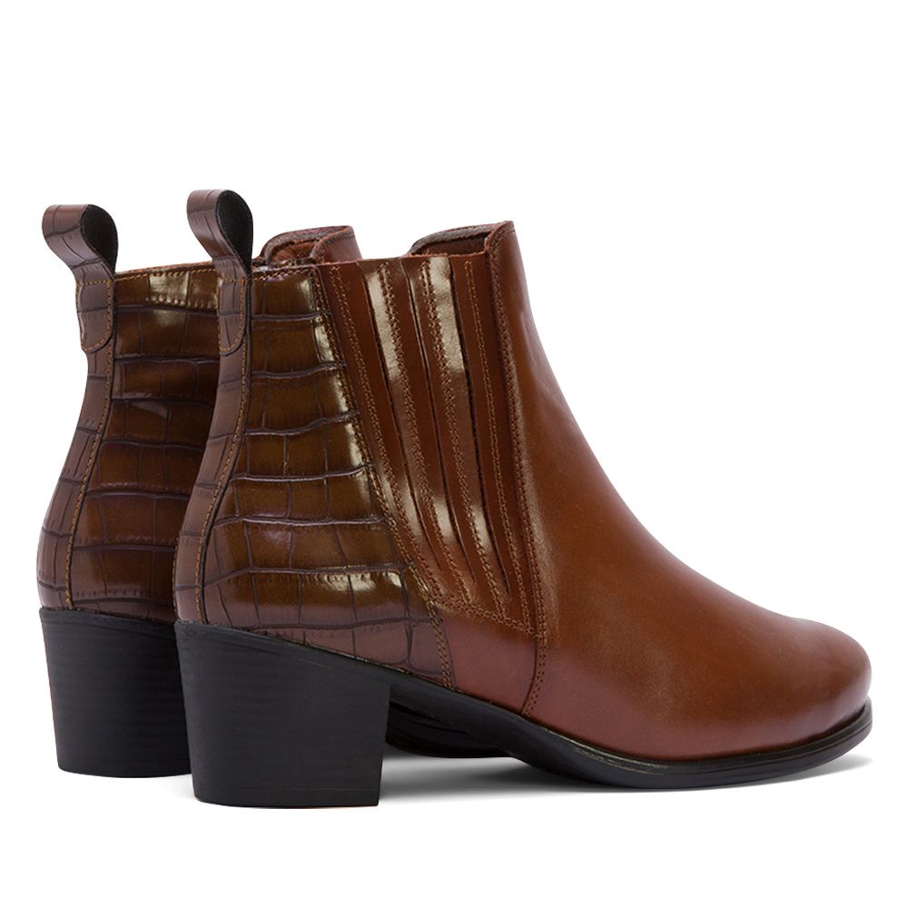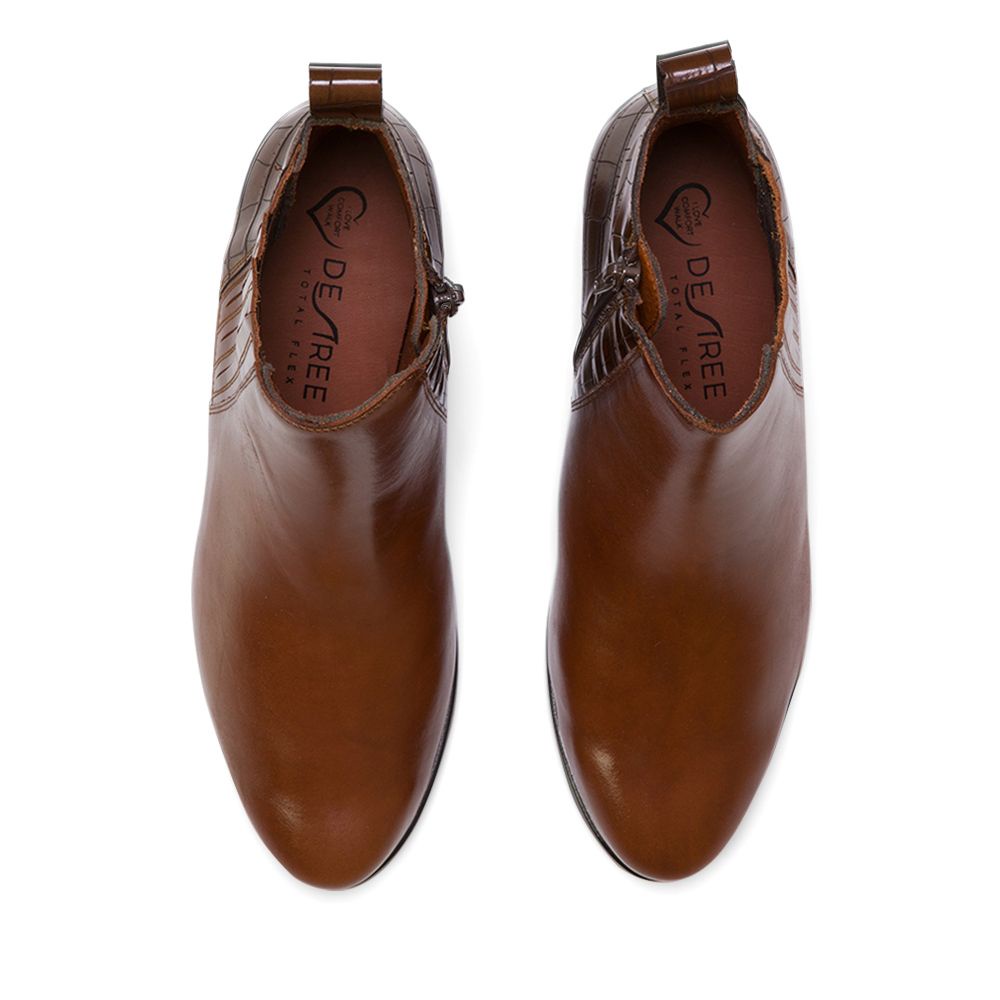DESIREE 異材質拼接真皮鱷魚紋短靴-棕