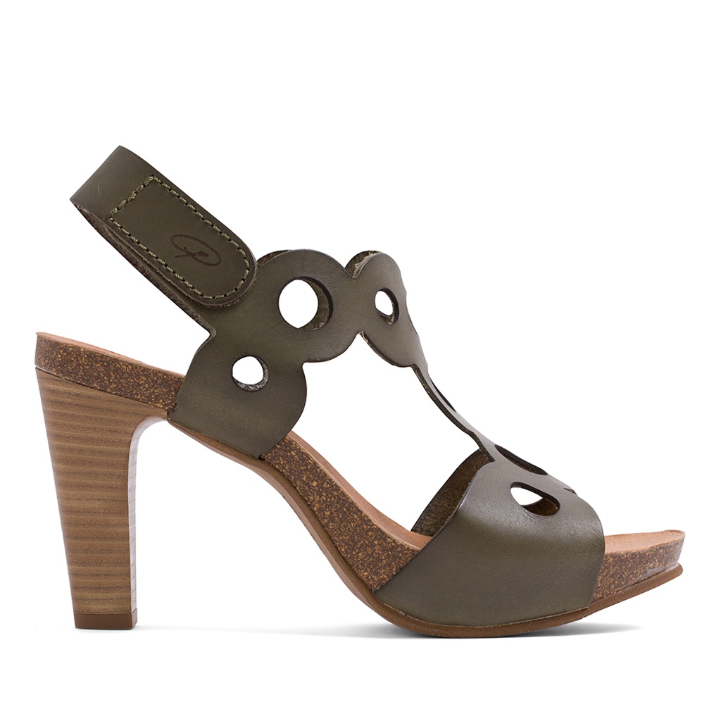 Penelope 真皮鏤空黏貼高跟涼鞋-綠