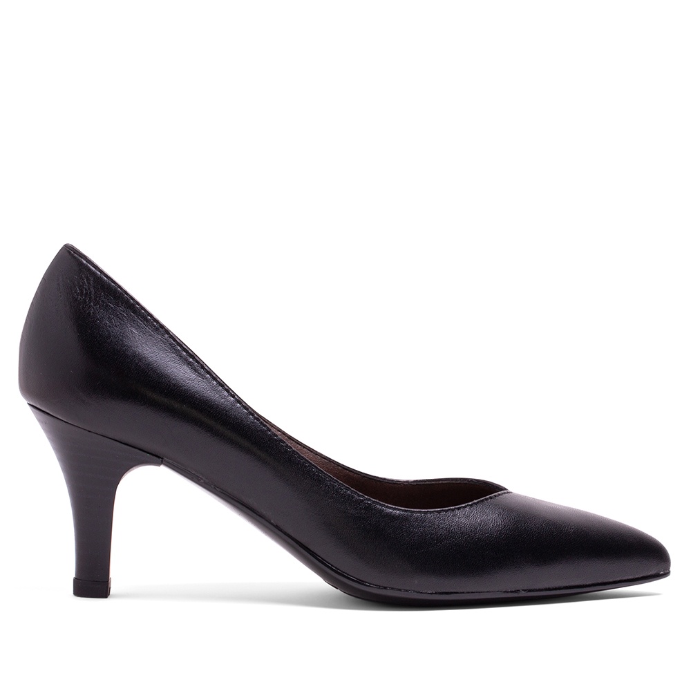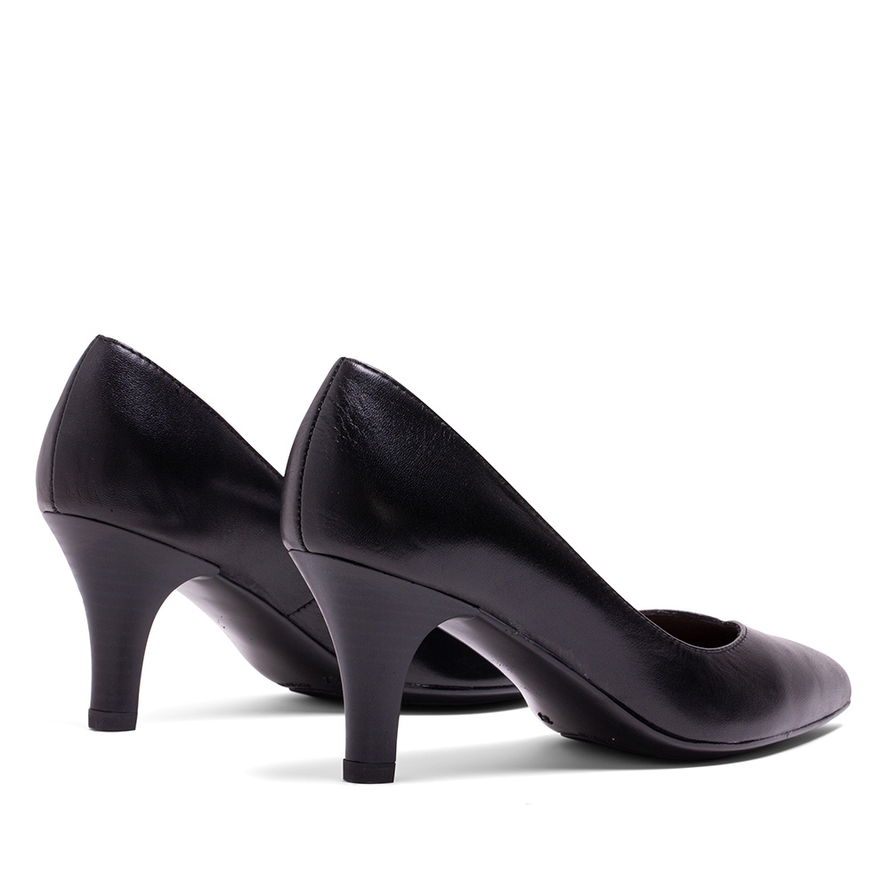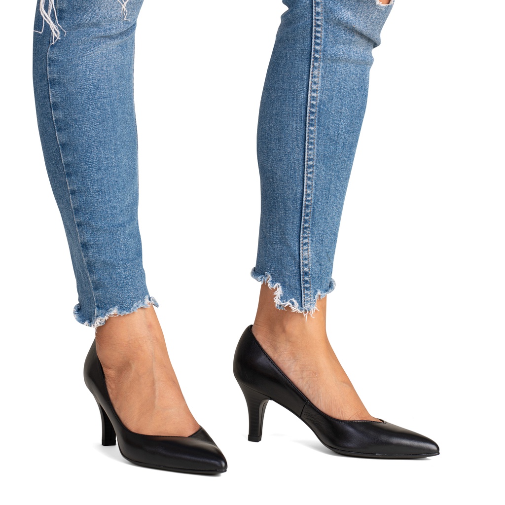 MISWEAR 真皮寬版尖頭高跟鞋-質感黑